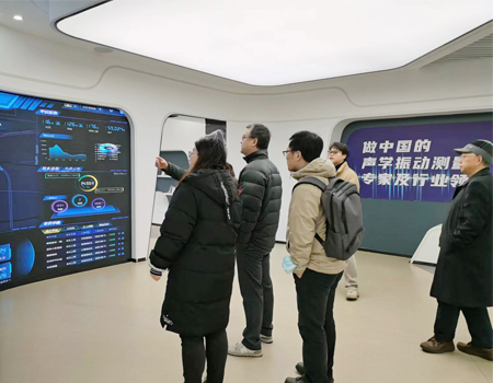 隨后一行人參觀了公司聲學(xué)與振動實驗室,在公司和浙江省計量科學(xué)研究院共建的全國首個噪聲測量儀器遠程智控方艙計量實驗室,領(lǐng)導(dǎo)們對應(yīng)用數(shù)字技術(shù)通過遠程智能控制、環(huán)境安全監(jiān)控、數(shù)據(jù)智能處理等模式開展噪聲儀器遠程在線自動檢測表達了濃厚興趣。